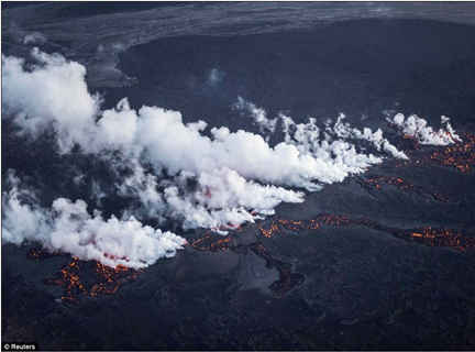 Figure 1a, Magma flow out along the fissure.
